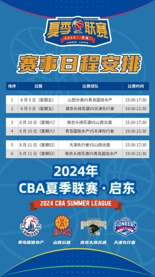 2024年CBA夏季联赛启东站即将开幕 四支现役球队齐