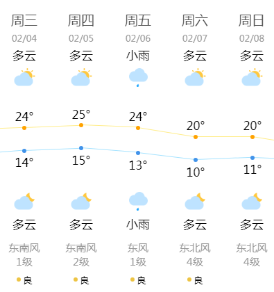 展望2月6日夜间-8日受新一股冷空气影响,日平均气温下降3~5℃,北风加大。