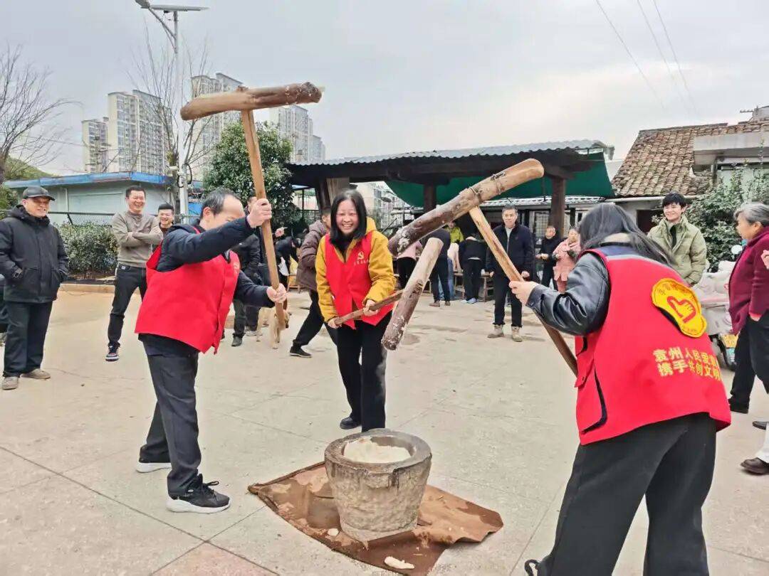 趣味互动环节拉开帷幕,现场热闹非凡。打麻糍、品八宝粥的传统民俗体验区前,居民们踊跃参与、分工协作,捶打声、欢笑声交织成温馨的节日乐章,热气腾腾的麻糍和香甜软糯的八宝粥,让大家在品尝美食的同时,感受着传统节日的独特魅力;套圈、扔球、垃圾分类转圈等文明主题游戏区更是排起了长队,游戏将文明知识与趣味挑战相结合,居民们在轻松玩乐中加深了对禁燃禁放、垃圾分类等内容的理解,现场不时响起阵阵喝彩声。